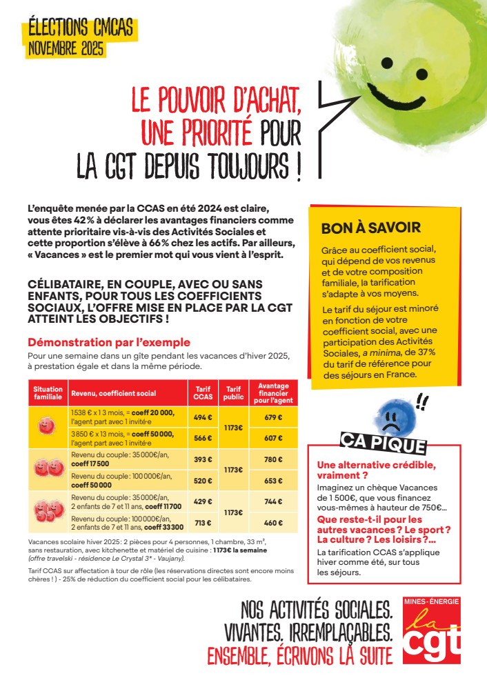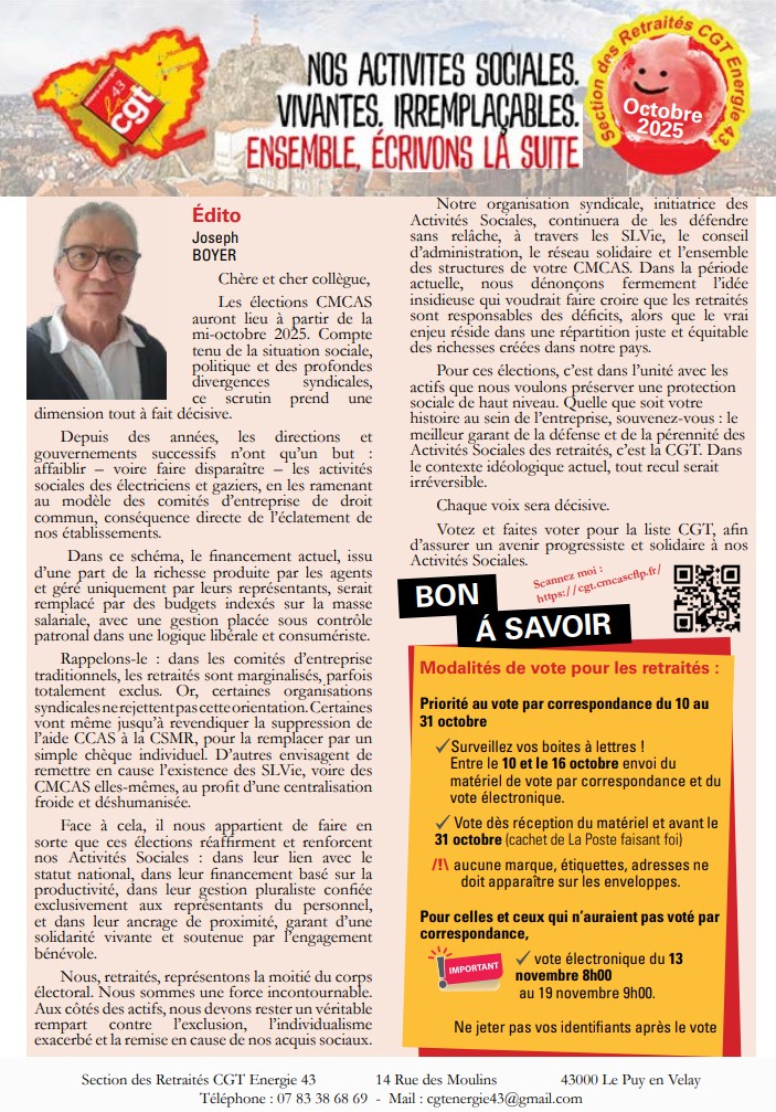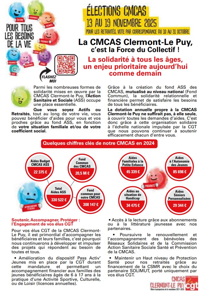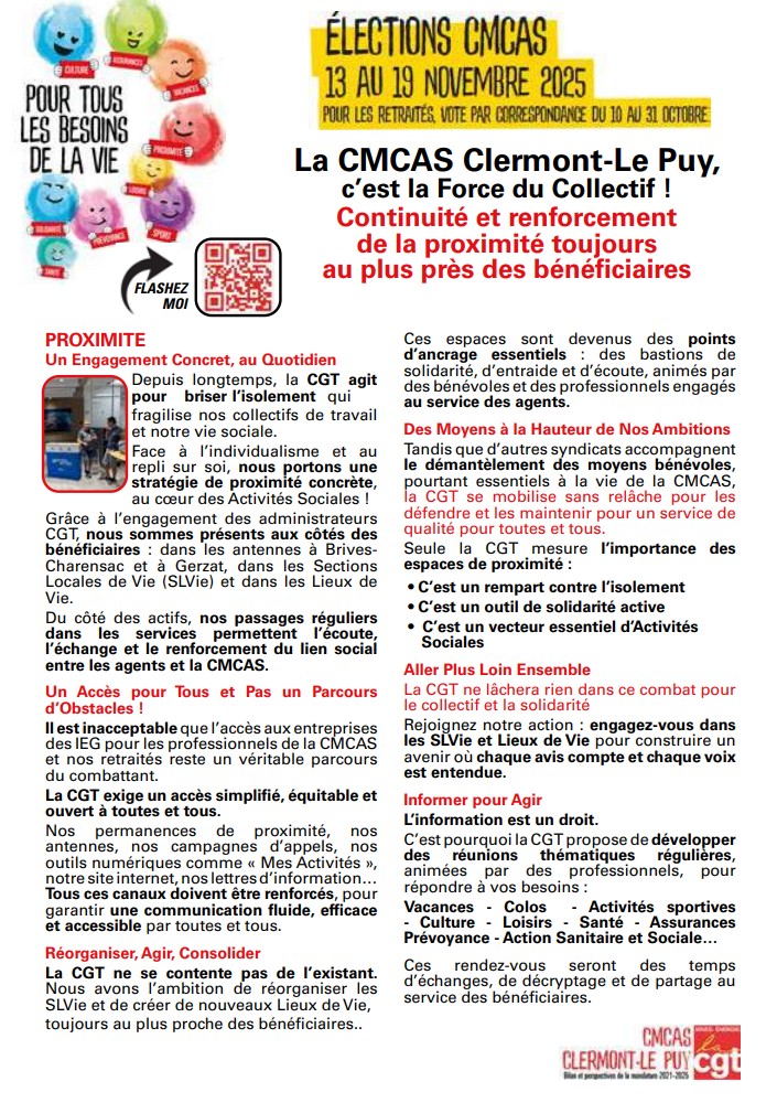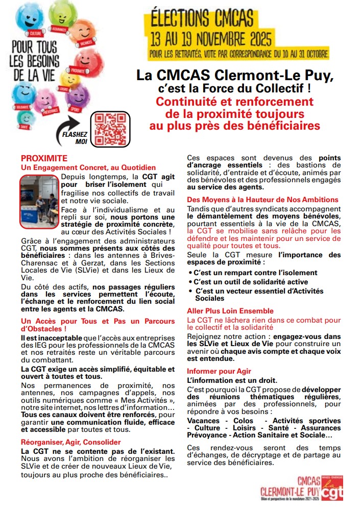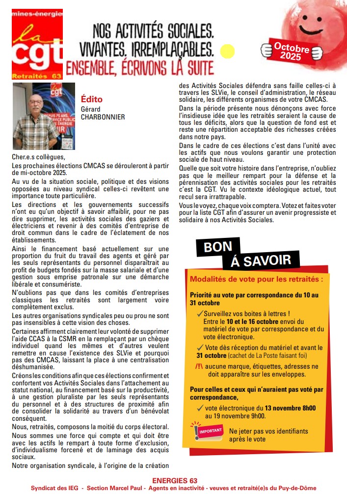 Comme vous le savez, les élections des CMCAS se tiendront du 6 octobre au 19 novembre 2025.