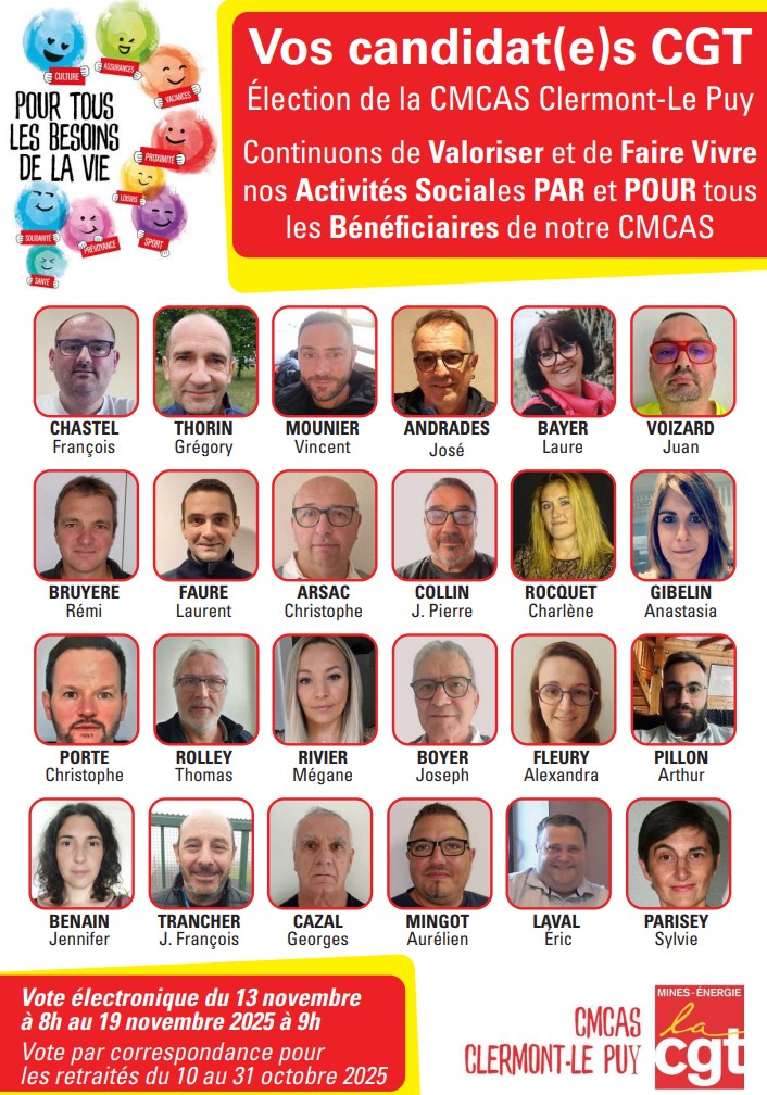 Bienvenue sur le site internet de la CGT dédié aux élections de la CMCAS Clermont-Le Puy de 2025.