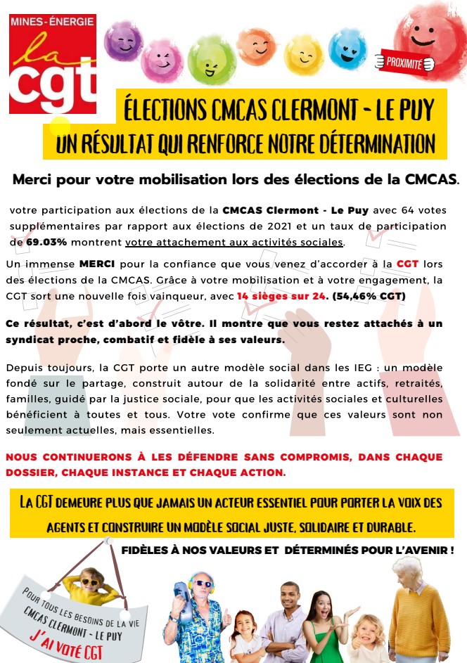 Lorrs de ce scrutin, la CMCAS Clermont–Le Puy enregistre 64 votants de plus qu’en 2021 et atteint un taux de participation de 69,03 %. Cette progression montre clairement l’importance que vous accordez aux activités sociales.